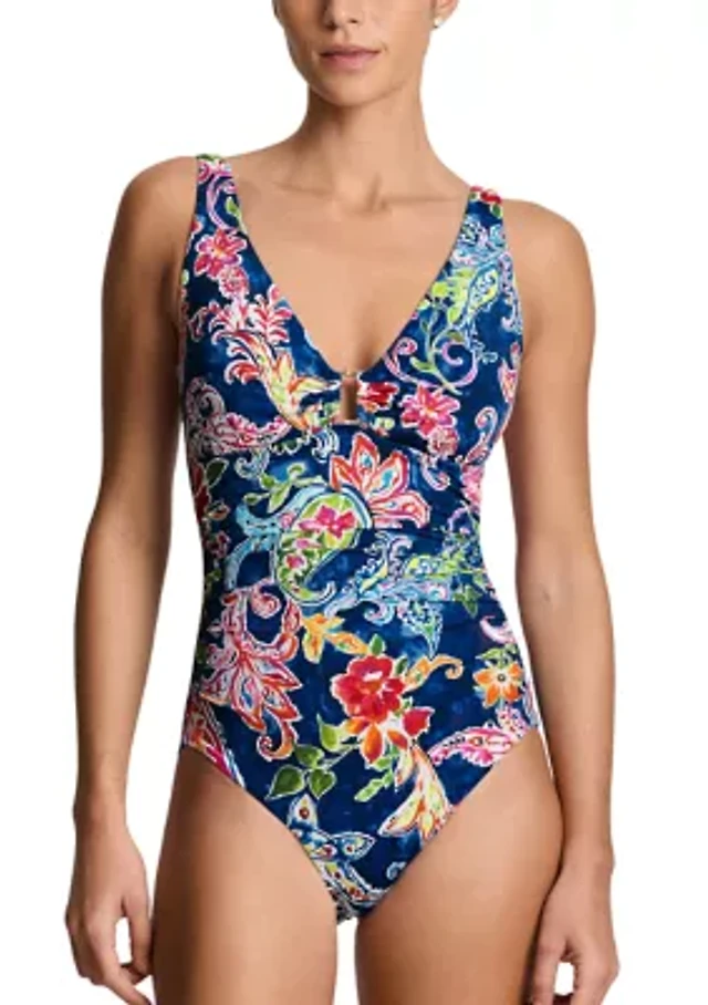 Vince Camuto Plunge V-neck One Piece Swimsuit