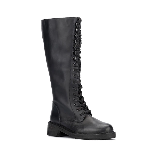 Patrizia Women's Misdreavus Metallic Burnished Tall Boot with Dual Buckles and Extended Calf Fit