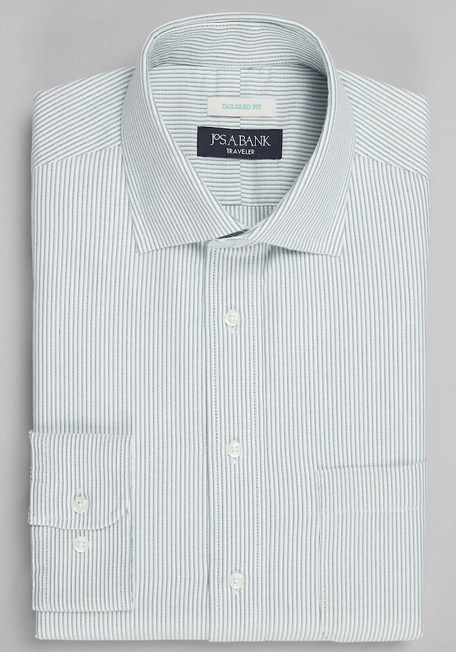 Men's Traveler® Collection Tailored Fit Stripe Dress Shirt at Jos. A. Bank, Green