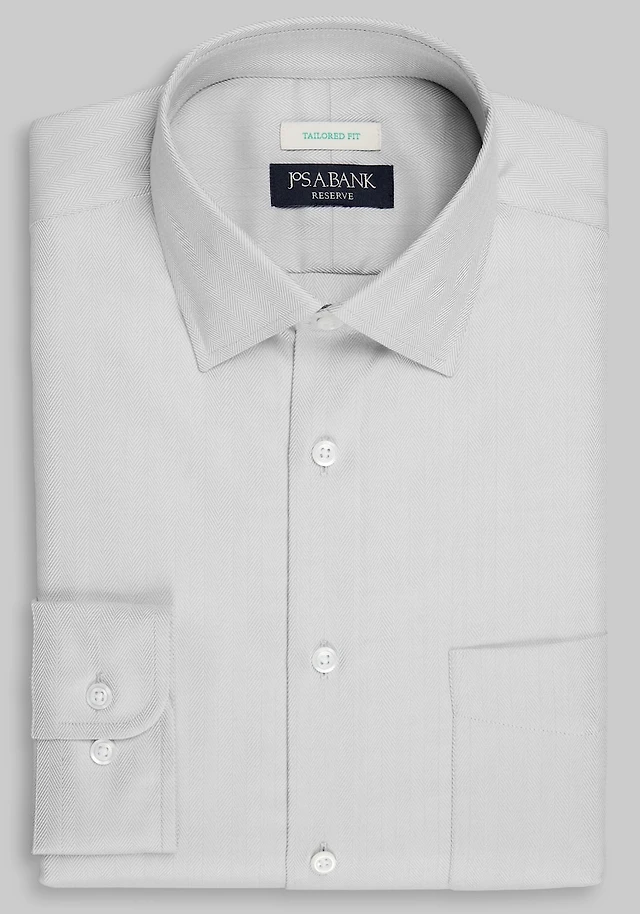 Men's Reserve Collection Tailored Fit Spread Collar Herringbone Dress Shirt at Jos. A. Bank, Grey