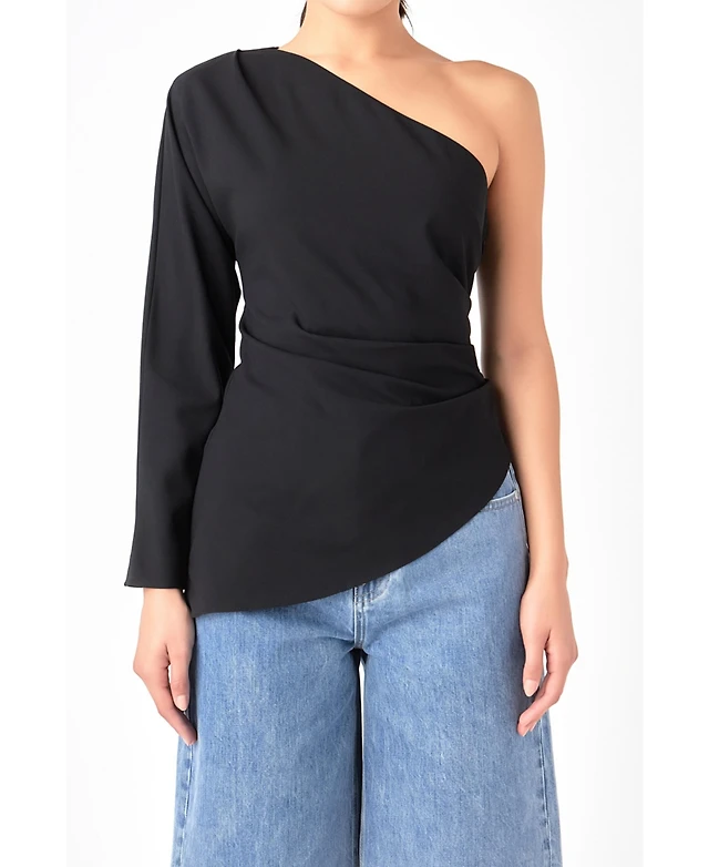 Grey Lab Women's Asymmetric Ruched Top