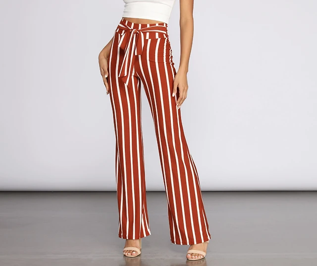 Cream & Burgendy Striped Flare Pants