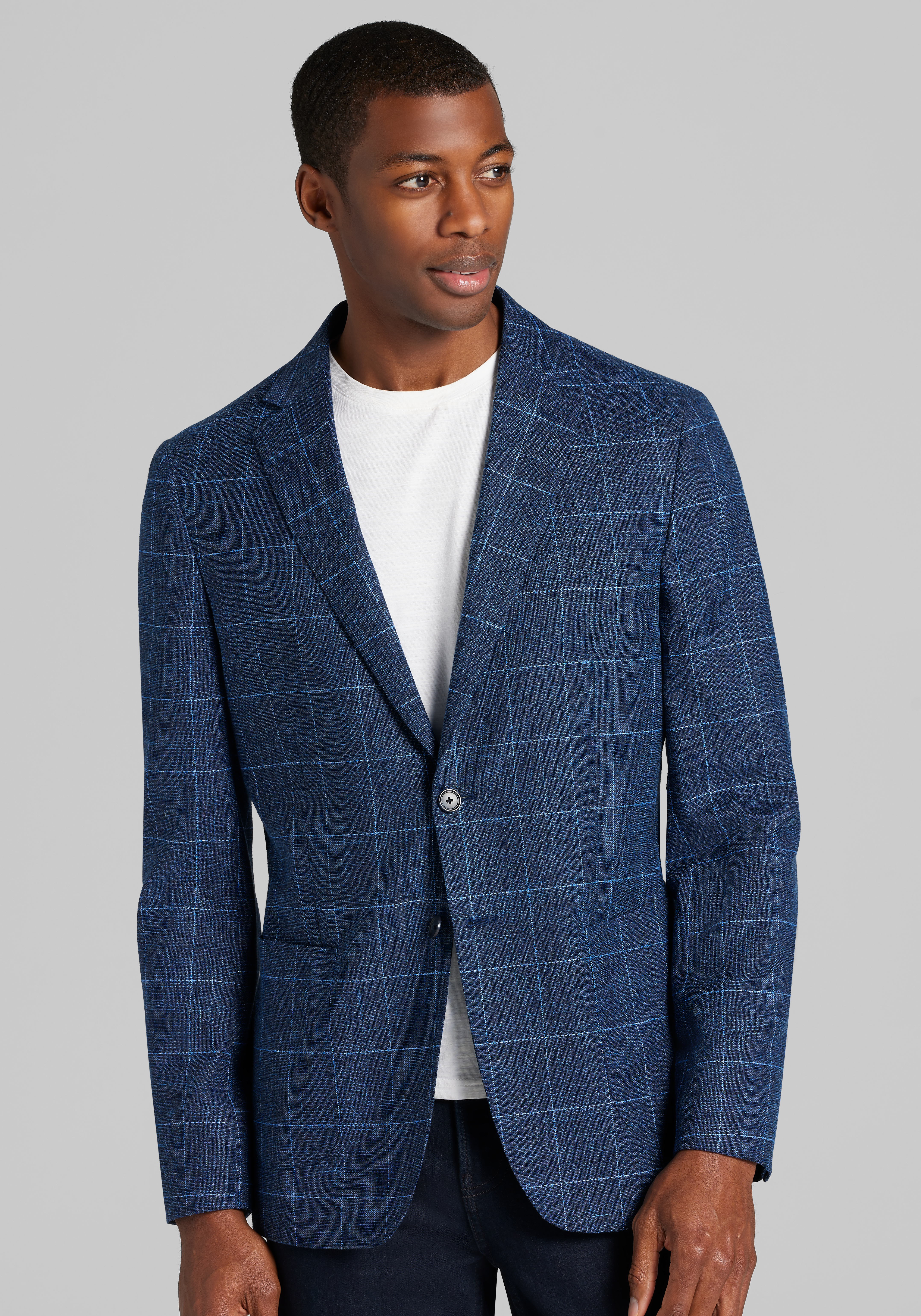 Haggar JMH Tailored Slub Glen Plaid Mens Stretch Fabric Modern Fit Sport Coat