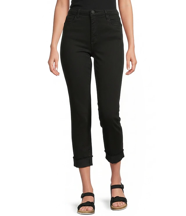 KUT from the Kloth Petite Size Amy Stretch Denim Mid Rise Cropped Straight Leg Jeans
