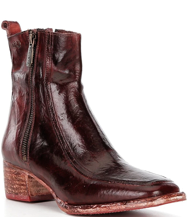 L Artiste Women s Icon Laser-Cut Leather Bootie with Ombre Edge and Zipper Closure