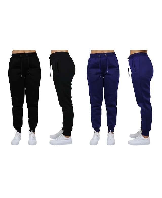 Galaxy By Harvic Women's Heavyweight Loose Fit Fleece Lined Cargo Jogger Pants Set, 2 Pack