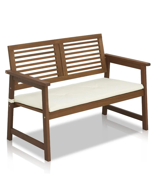 Homlux Outdoor Hardwood Bench with Cushion – Teak-Oil Finish, Durable & Comfortable Seating