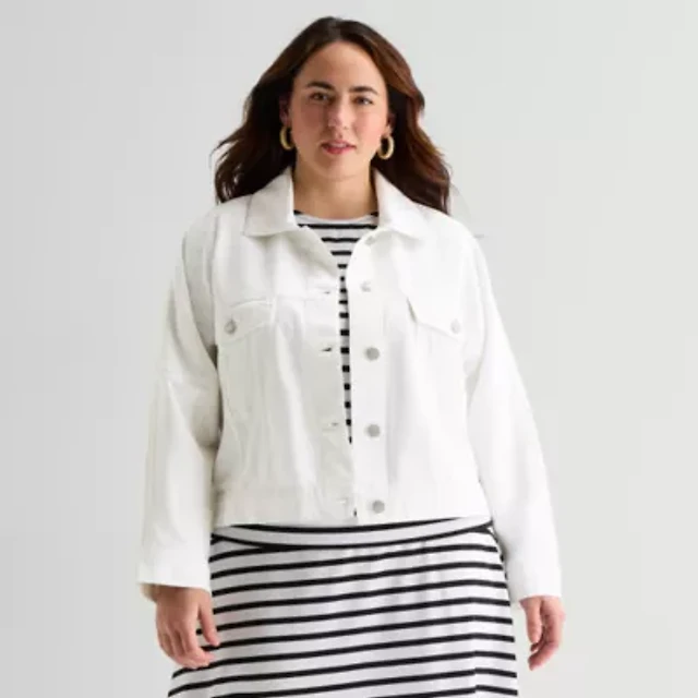 Liz Claiborne Womens Plus Denim Cropped Jacket