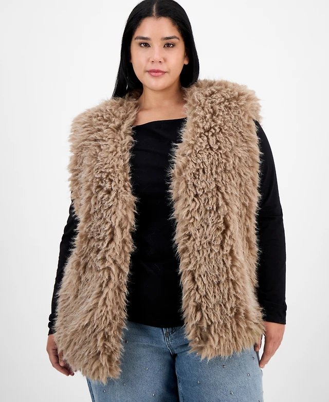Kensie Women's Cinched Waist Quilted Jacket with Faux Fur Collar