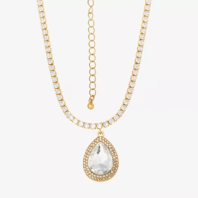 JS Jessica Simpson Gold Tone Womens Glass Alloy 15 Inch Pendant Necklace