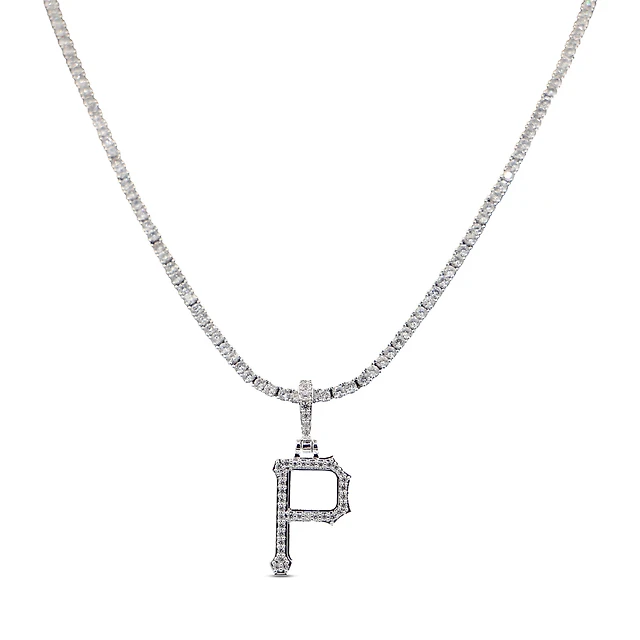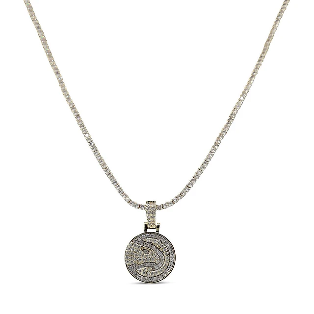 GLD Charlotte Hornets 14K White Gold Logo Pendant & 20" Tennis Chain