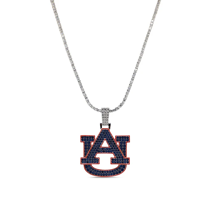 GLD Auburn Tigers 14K White Gold Logo Pendant & 20" Tennis Chain
