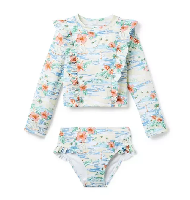 Recycled Floral Ruffle Rash Guard Swimsuit
