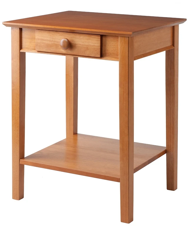Gouun Wood Retro End Table with Mirrored Glass Drawer and Open Storage Shelf