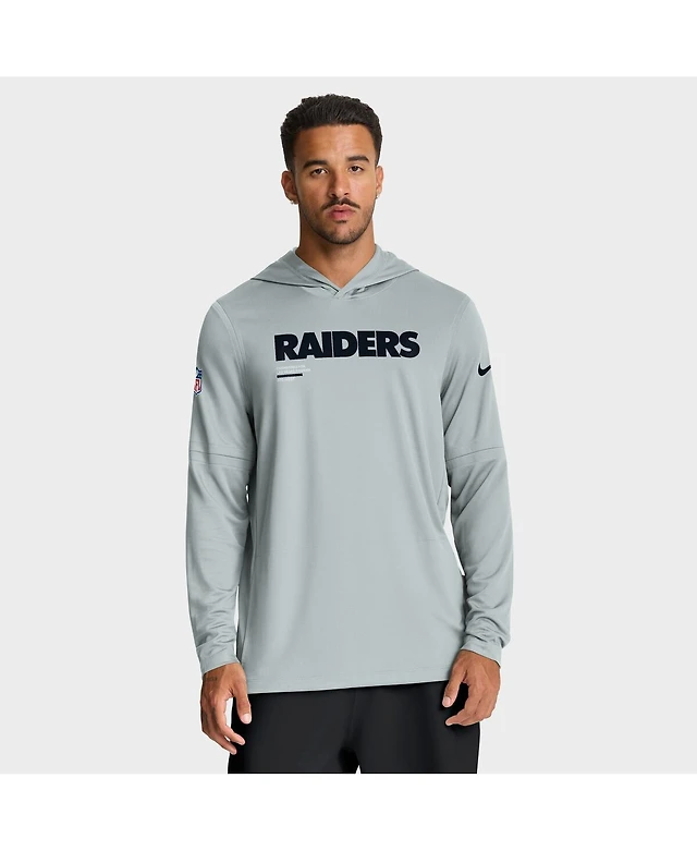 Nike Men's Silver Las Vegas Raiders Sideline Pure Fury Performance Long Sleeve Hoodie T-Shirt