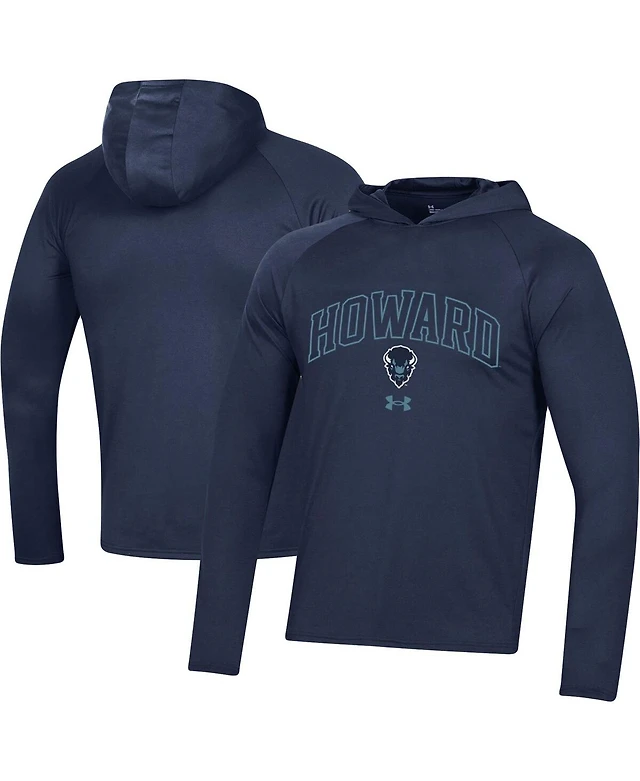 Men's Under Armour Navy Howard Bison 2023 Sideline Tech Hooded Raglan Long Sleeve T-shirt