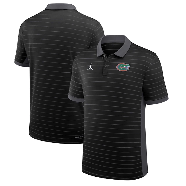 Men's Jordan Brand Black Florida Gators 2025 Early Season Coaches Sideline Victory Stripe Dri-FIT Polo