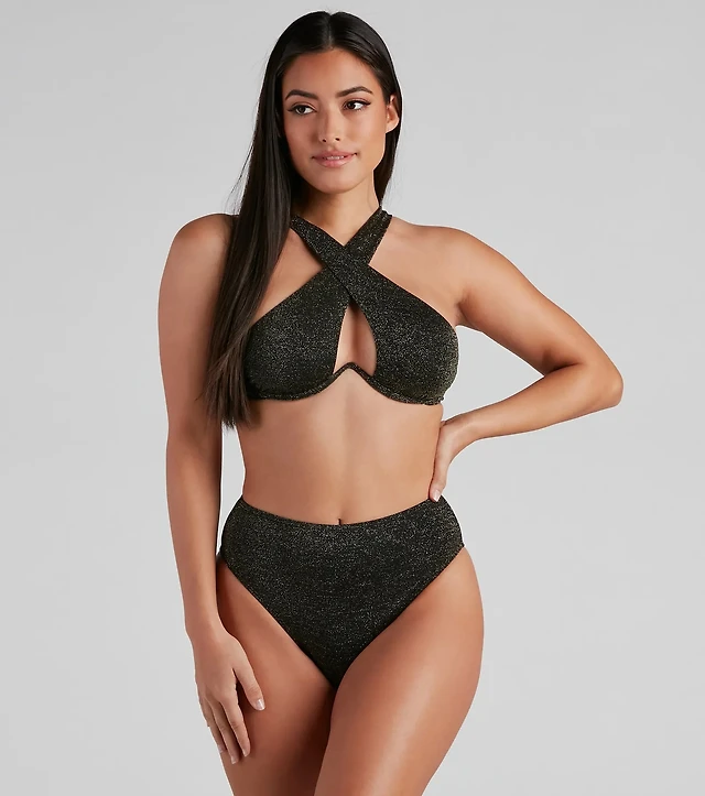 Cupshe Women's Textured Halter Side Shirred Bikini Sets