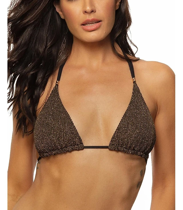 Rio De Sol Frufru Shimmer Black Triangle Bikini Top