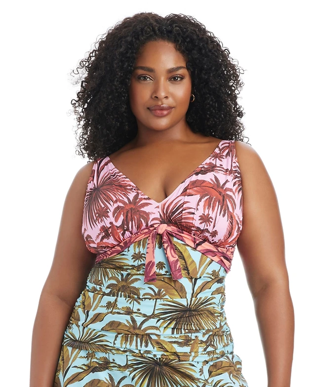 Island Escape Plus Racerback V-Neck Tankini Top, Macy's Exclusive