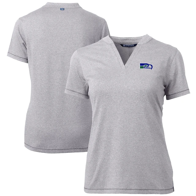 Women's Cutter & Buck Heather Gray Seattle Seahawks Throwback Logo Forge Blade V-Neck Polo