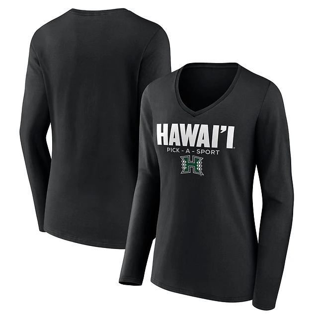 Women's Black Hawaii Rainbow Warriors Authentic Pick-A-Sport Long Sleeve V-Neck T-Shirt
