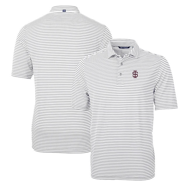 Men's Cutter & Buck Gray Southern Illinois Salukis Throwback Logo Virtue Eco Pique Stripe Recycled Polo