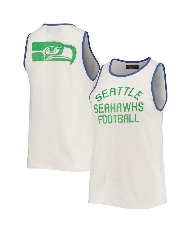 Women's Junk Food White and Royal Seattle Seahawks Throwback Pop Binding Scoop Neck Tank Top