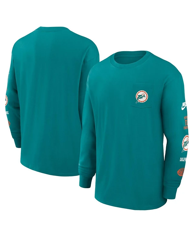 Nike Men's Aqua Miami Dolphins Rewind Heavy Max 90 Pocket Long Sleeve T-Shirt