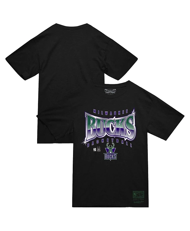Mitchell & Ness Men's Black Milwaukee Bucks Worldwide Collection Glow Up T-Shirt