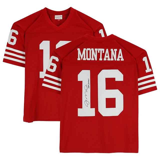 Joe Montana San Francisco 49ers Autographed Mitchell & Ness 1990 Throwback Scarlett Replica Jersey with "HOF 2000" Inscription