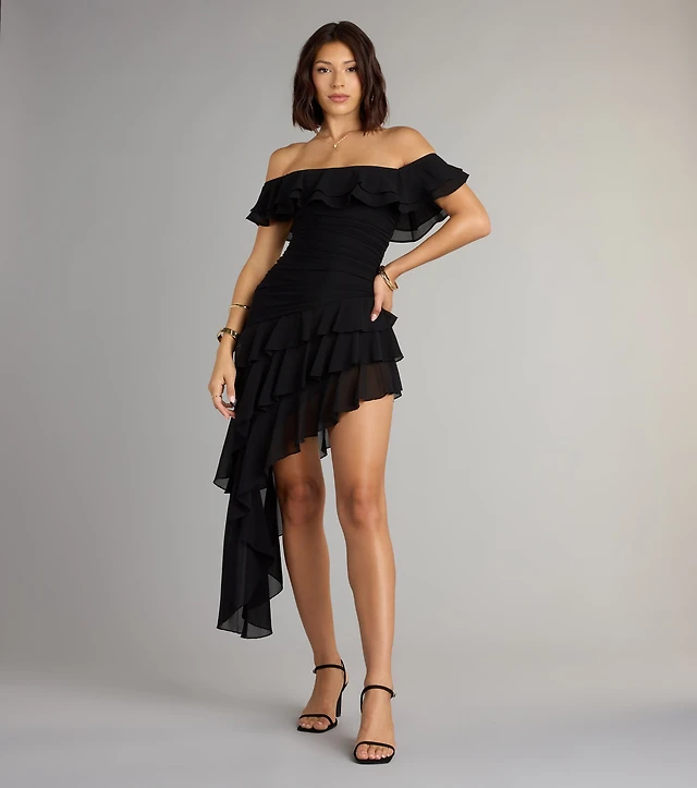 Shea Metallic Applique Off Shoulder Chiffon Dress