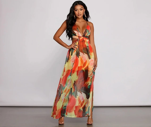 Effortless Beauty Chiffon Burnout Floral Maxi Dress
