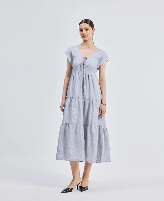 Connected Women's Tiered Textured Sleeveless Midi Dress
