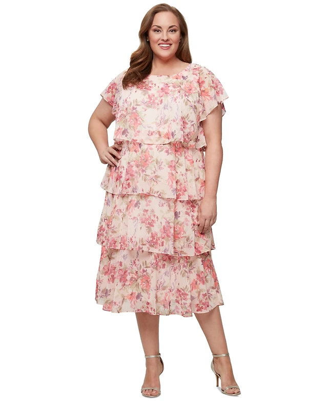 Sl Fashions Plus Embellished Tiered Midi Dress