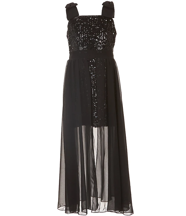 Xtraordinary Big Girls Tie-Shoulder Sequin-To-Chiffon Walk-Through Dress