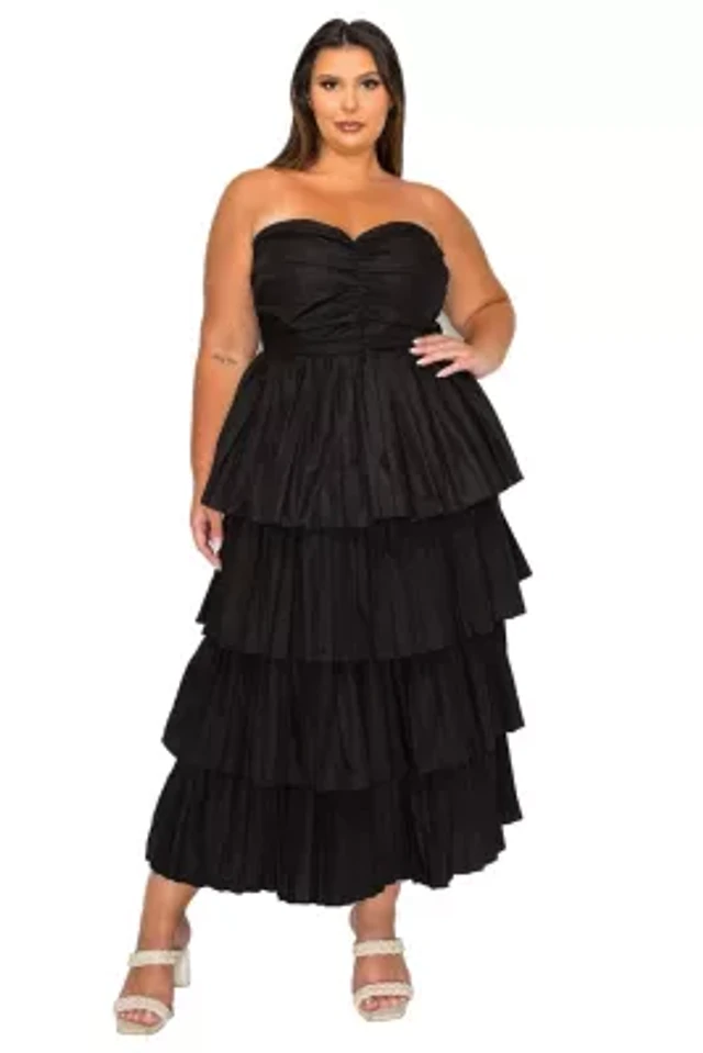 Milla Women's Black Fitted Maxi Dress With Puffy Tiered Skirt