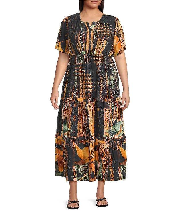 Sl Fashions Plus Tiered Metallic Dress