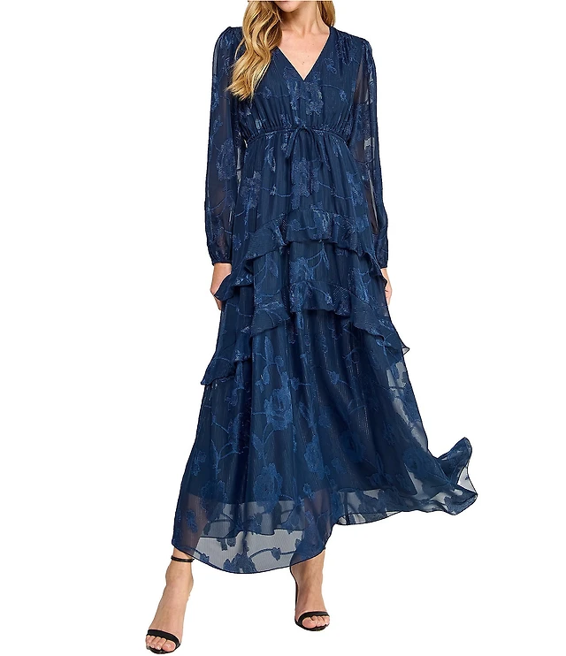 B. Darlin Floral Printed Mesh Ruffle Tiered Long Dress