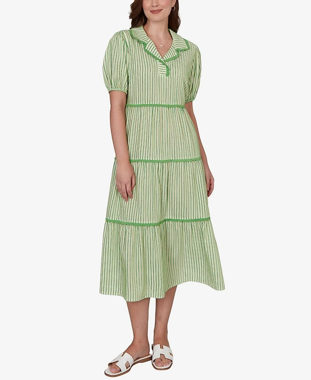 Belle Isle Embroidered Trim Tiered Dress
