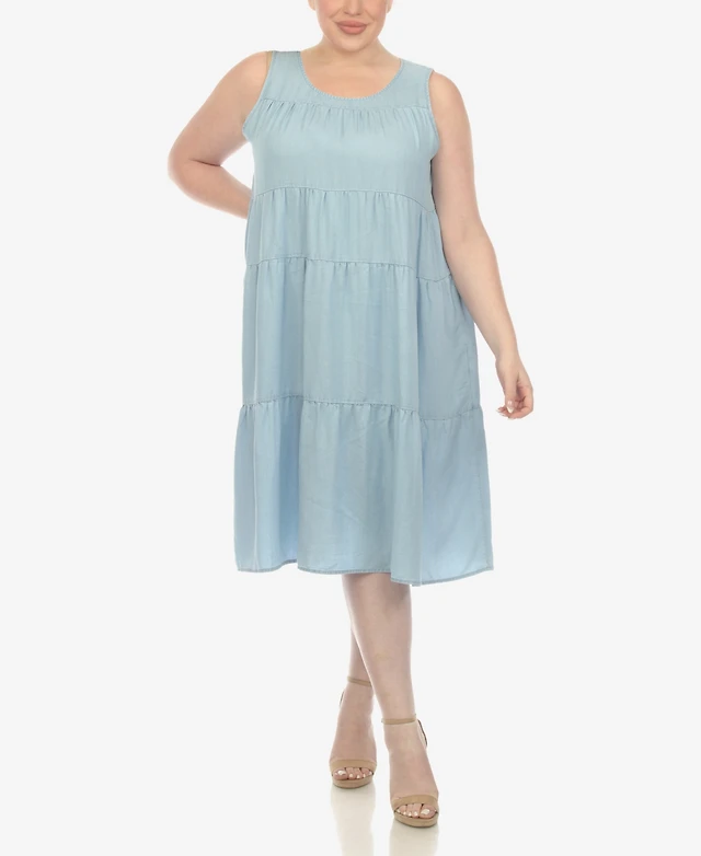 White Mark Plus Scoop Neck Tiered Midi Dress