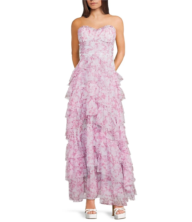 Mac Duggal Women's Floral Printed Chiffon Tiered Ruffle Gown