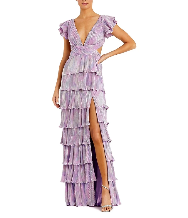 Lulus Mulholland Cutout Plisse Ruffle Maxi Dress