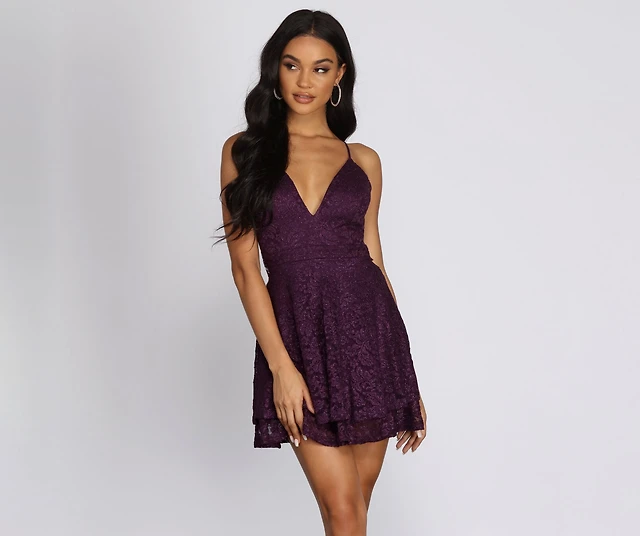 Sweet Like Honey Floral Lace Skater Mini Dress