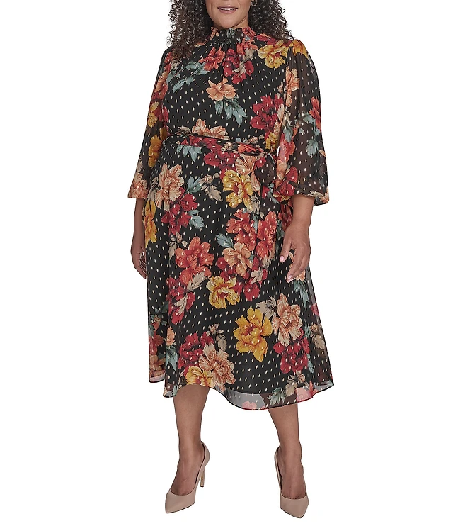 Melonie T Womens 3/4 Sleeve Floral Fit + Flare Dress