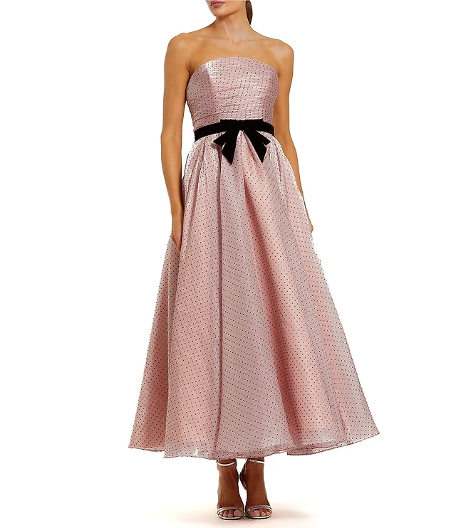 Mac Duggal Petite Polka Dot Organza Strapless Ankle Dress With Bow