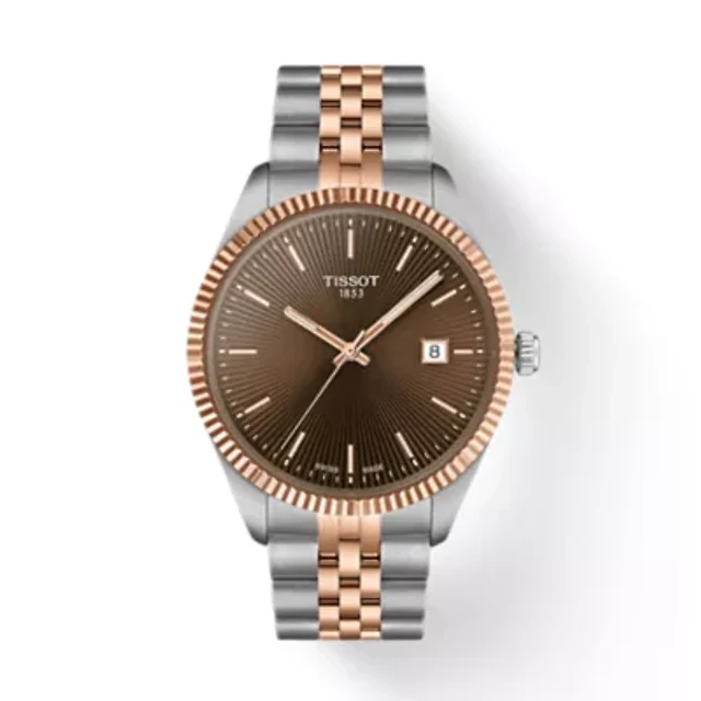 Men's Tissot Ballade Gold-Tone PVD and Stainless Steel Watch with Silver-Tone Dial (Model: T1564102203100)