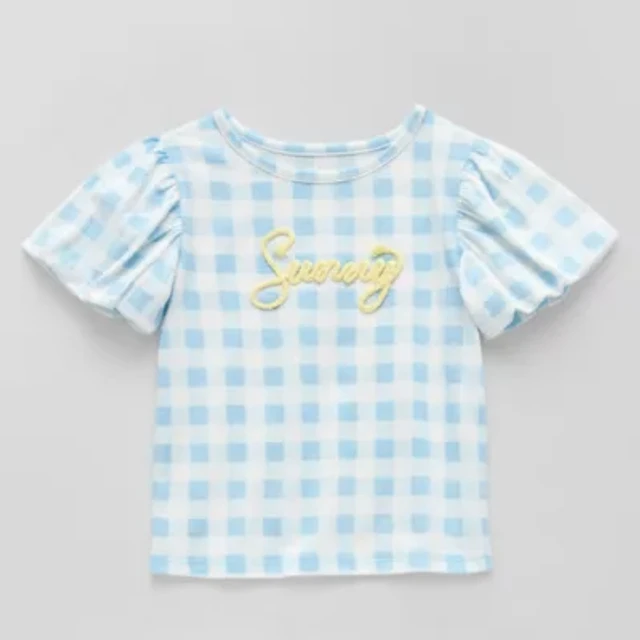 Okie Dokie Girls Crew Neck Puff Sleeve Graphic T-Shirt
