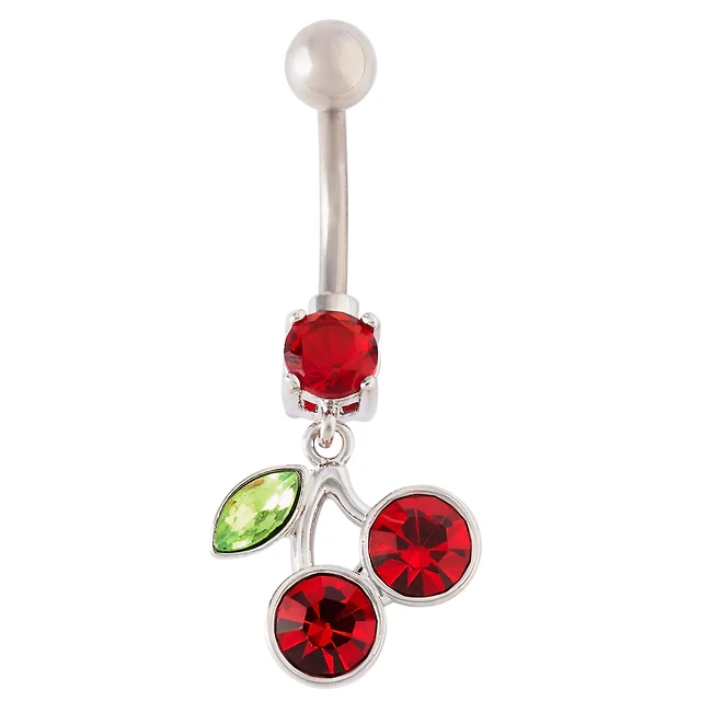 CZ Silver-Plated Spider Web Dangle Belly Ring - 14 Gauge
