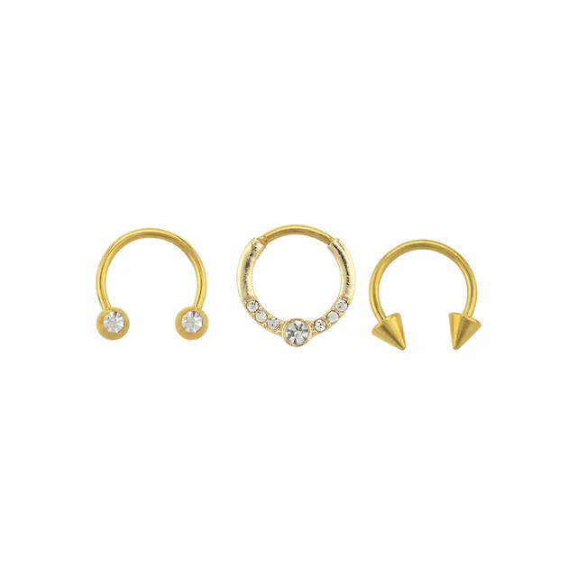 Multi-Pack Stacked CZ Goldtone Half Hoop Earrings - 3 Pair